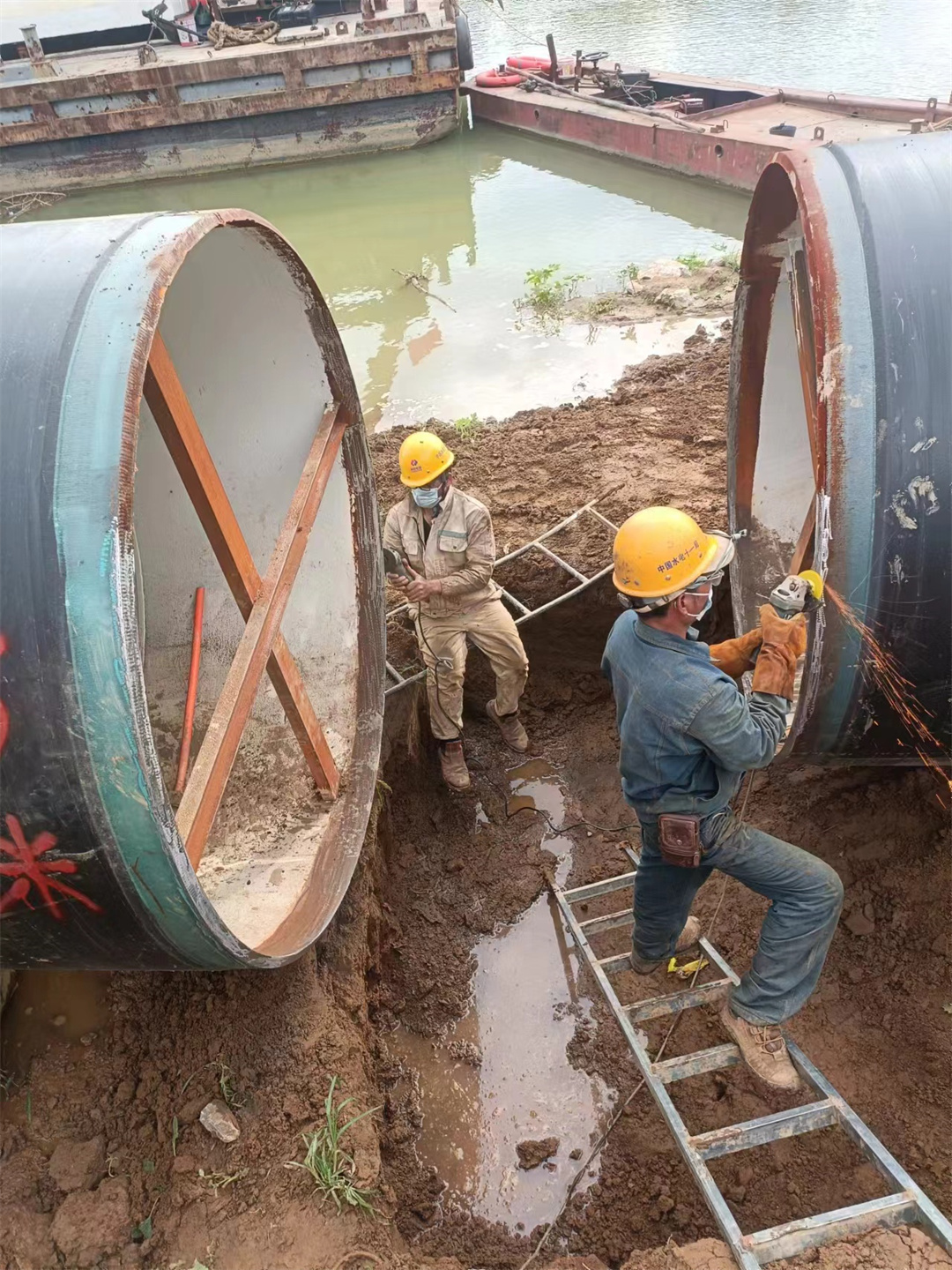 浮漂拖航鋪管:先在岸邊把管子連接成一定長度的管段,管段兩端堵板,浮漂拖航到鋪管位置,灌水入管,下沉到水底或溝槽內(nèi),取下堵板,然后將各管段之間在水下接口。預(yù)制管段用船只或用設(shè)在對岸的曳引設(shè)備(卷揚(yáng)機(jī)、拖拉機(jī)等)浮拖。管的兩端采用法蘭盤螺栓堵板,在堵板上設(shè)有放氣孔和進(jìn)水孔。管段由水面浮航到溝槽上方,由定位起重船吊放入槽。管段水下定位及接口均由潛水工操作。
