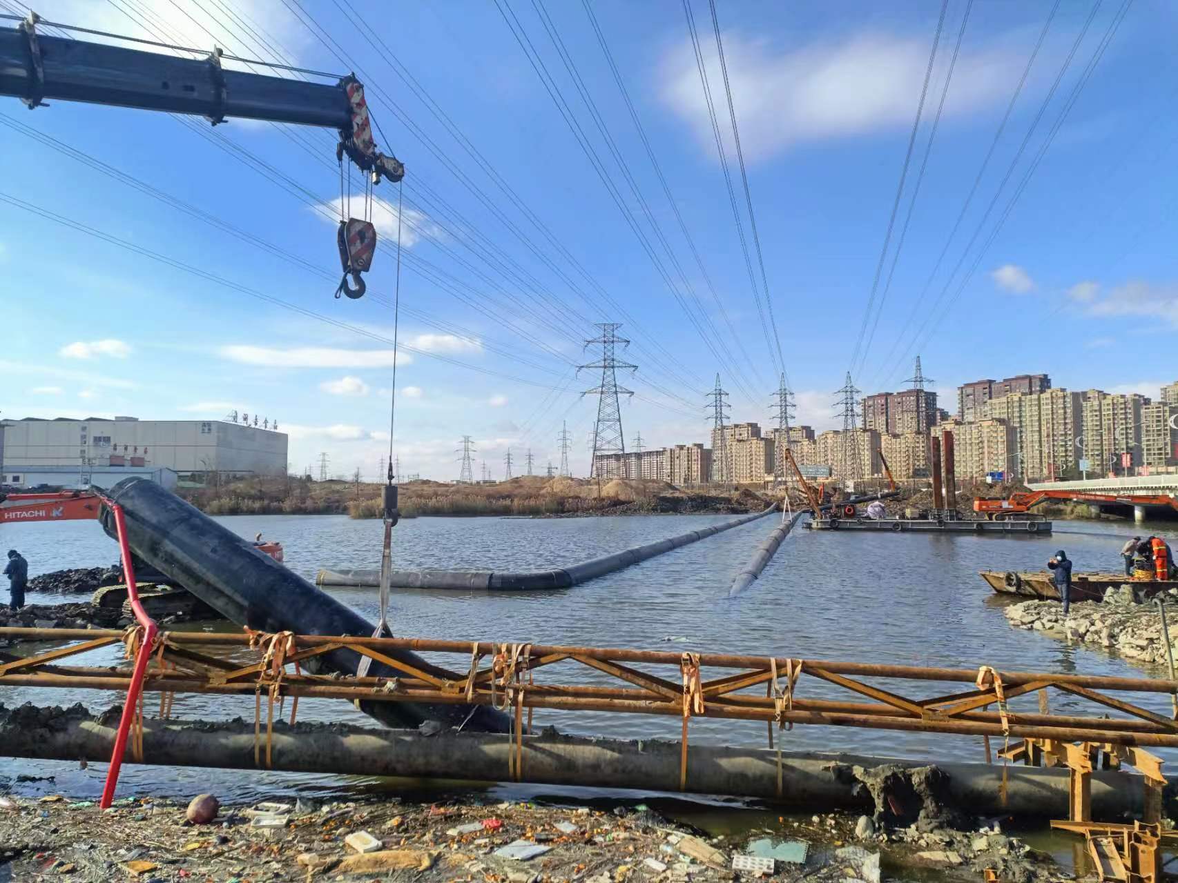 3. 沉放管段:在指定的位置,通過向管段內(nèi)加載(如灌水)使其下沉至預(yù)先挖好的水底溝槽內(nèi)。