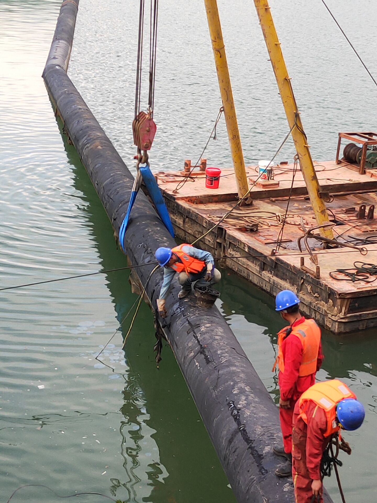 在進行過河管道水下安裝時,需要注意以下事項:
